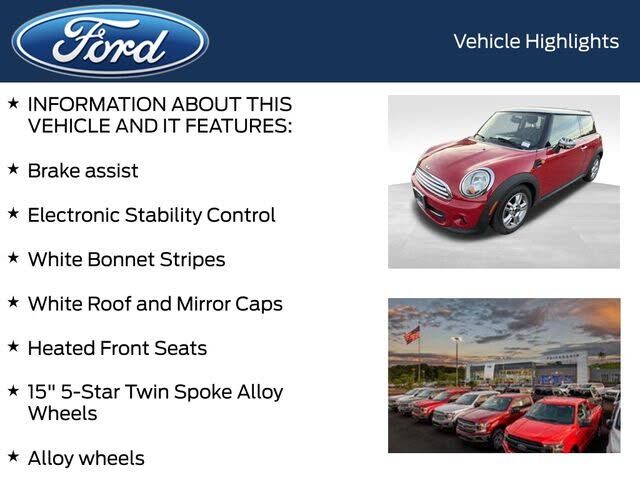 INFORMATION ABOUT THIS VEHICLE AND IT FEATURES:, 15" 5-Star Twin Spoke Alloy Wheels, Alloy wheels, Brake assist, Electronic Stability Control, Heated Front Seats, White Bonnet Stripes, White Roof and Mirror Caps. 2013 MINI Cooper Chili Red FWD 6-Spee...