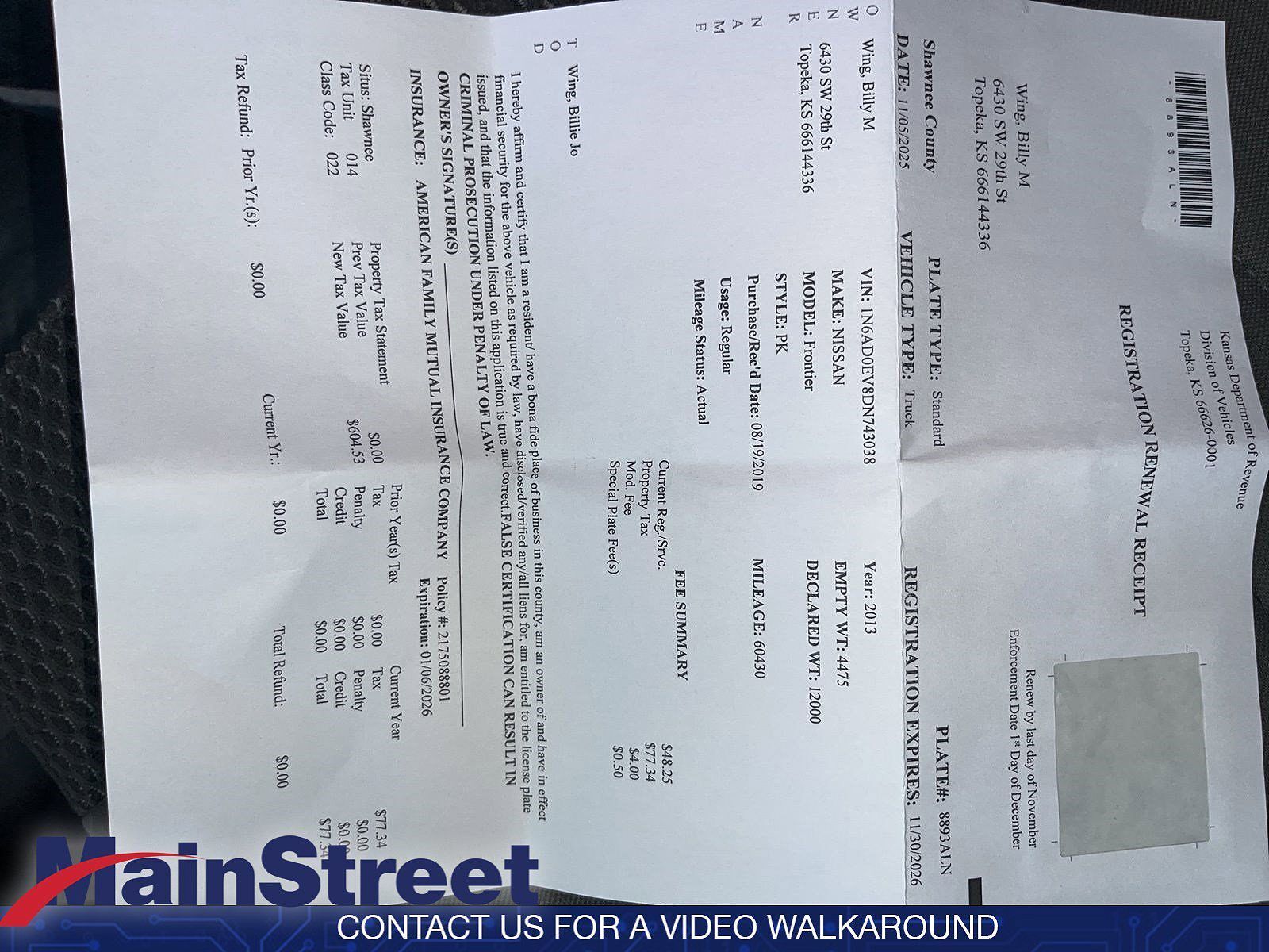 VIN 1N6AD0EV8DN743038 may have been