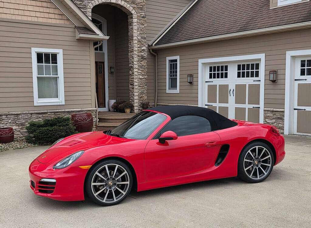 Uber Cool 2013 Porsche 981 Boxster, with Manual 6-Speed Gearbox! Finished in Classic Guards Red contrasted by a Black Convertible Top and a rare Black/Red 2-Tone Partial Leather Interior. Options include Heated/Cooled Sport Seats, & 20 Carrera Classi...
