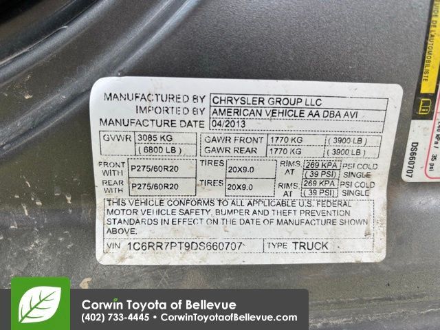 VIN 1C6RR7PT9DS660707 may have been