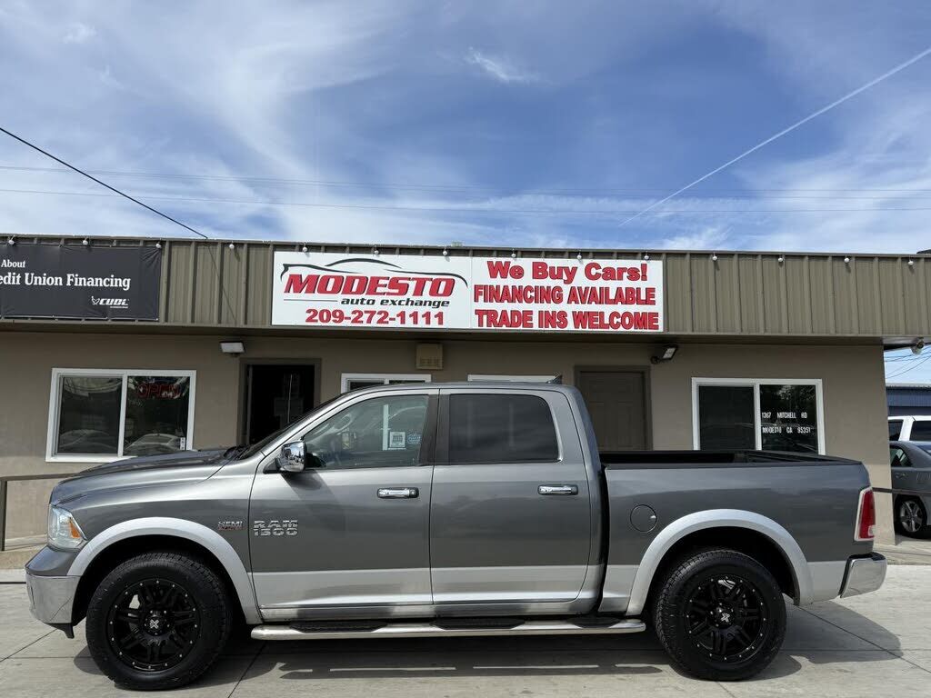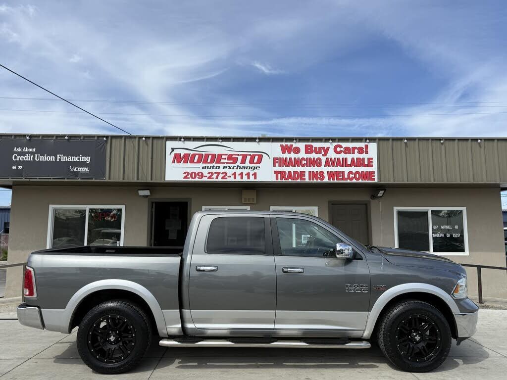 Now offering an excellent 2013 RAM 1500 Laramie Laramie 4x4 Crew Cab 5.7L V8 with 108K low miles that is Gray in color and that includes AM/FM Compact Disc Player, Traction Control, Side Head Curtain Airbag, Electronic Parking Aid, Keyless Entry, Cru...