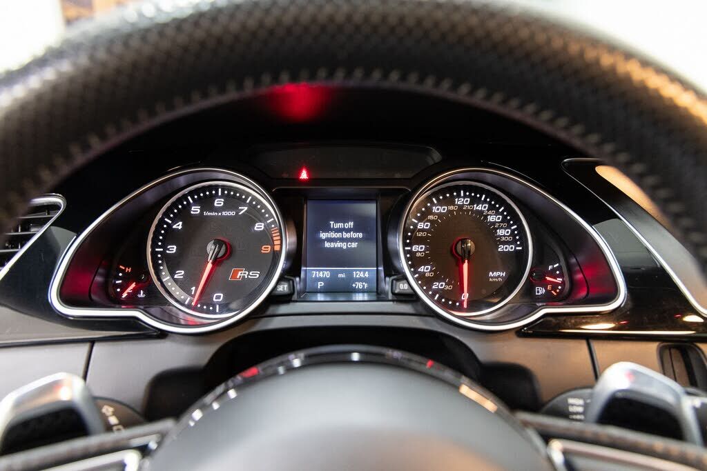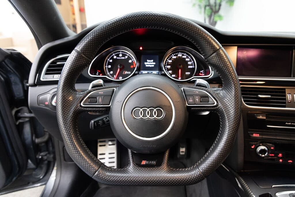2014 Audi RS 5 4.2 with 71k miles. Daytona Gray Pearl Effect with Black Nappa Leather. Factory options include: Audi MMI Navigation Plus Package, Bang & Olufsen Sound System, Audi Rearview Camera, Audi Side Assist, Navigation, Satellite Radio, Bl...
