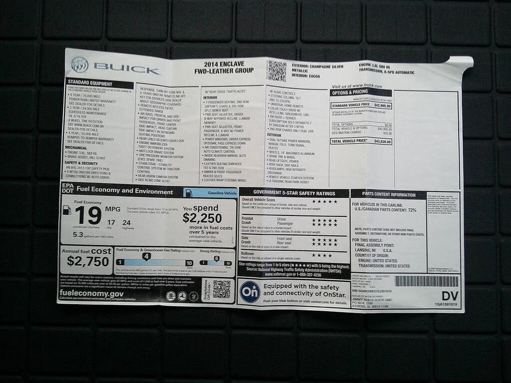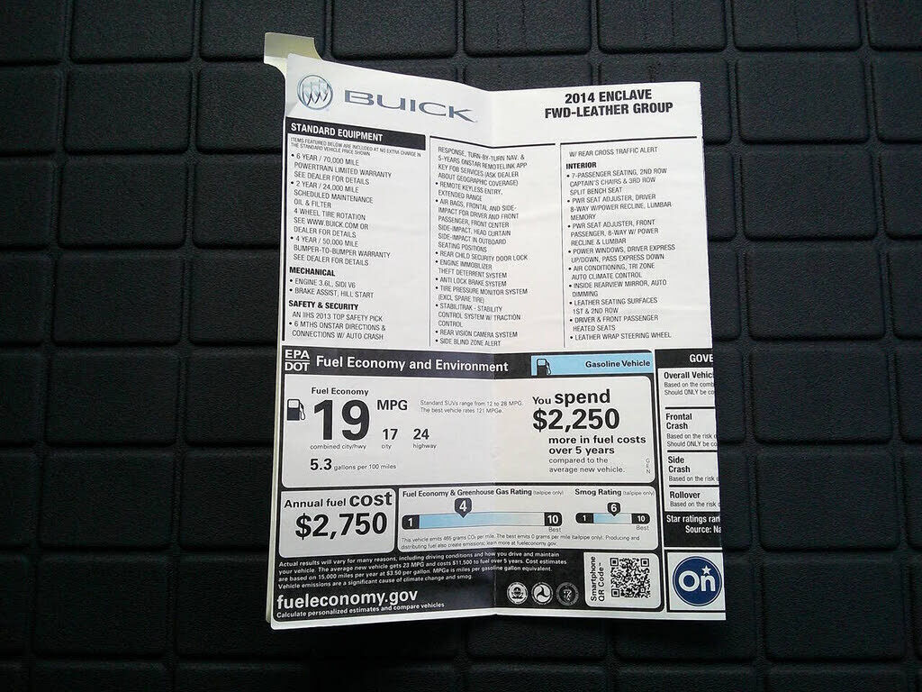 ENCLAVE LEATHER GROUP LOADED WITH HEATED LEATHER SEATS, BACK-UP CAMERA, REAR PARK ASSIST, SATELLITE RADIO, BLUETOOTH CONNECTIVITY, MEMORY SEAT, ONSTAR CAPABILITY, VOCAL ASSIST TELEMATICS, POWER OPTIONS (SEATS, WINDOWS, DOOR LOCKS, MIRRORS), HEATED MI...