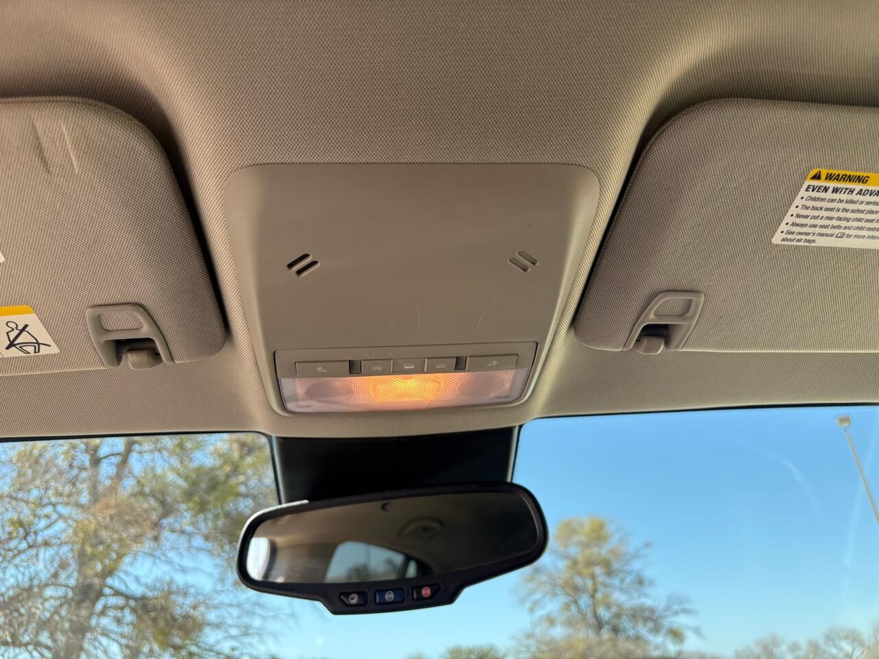 Visors, driver and front passenger illuminated vanity mirrors, covered