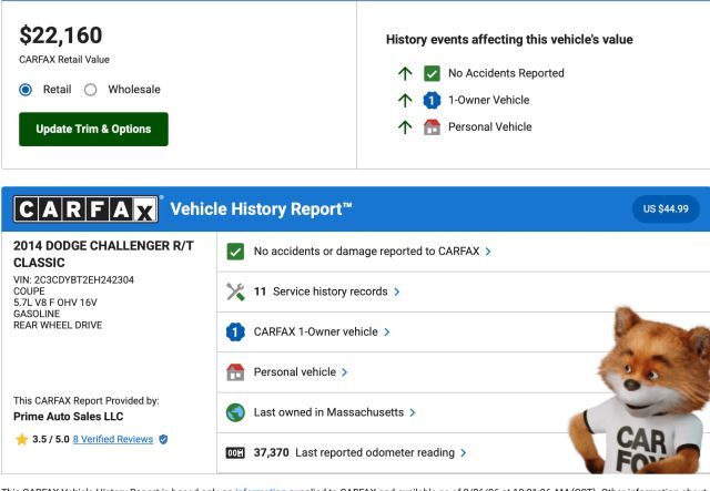 To be more confident in your used car purchase and get more information about the auto, including its accident history, insurance records, odometer readings history and other important details, we recommend you get a vehicle history report for the car prior to buying it.