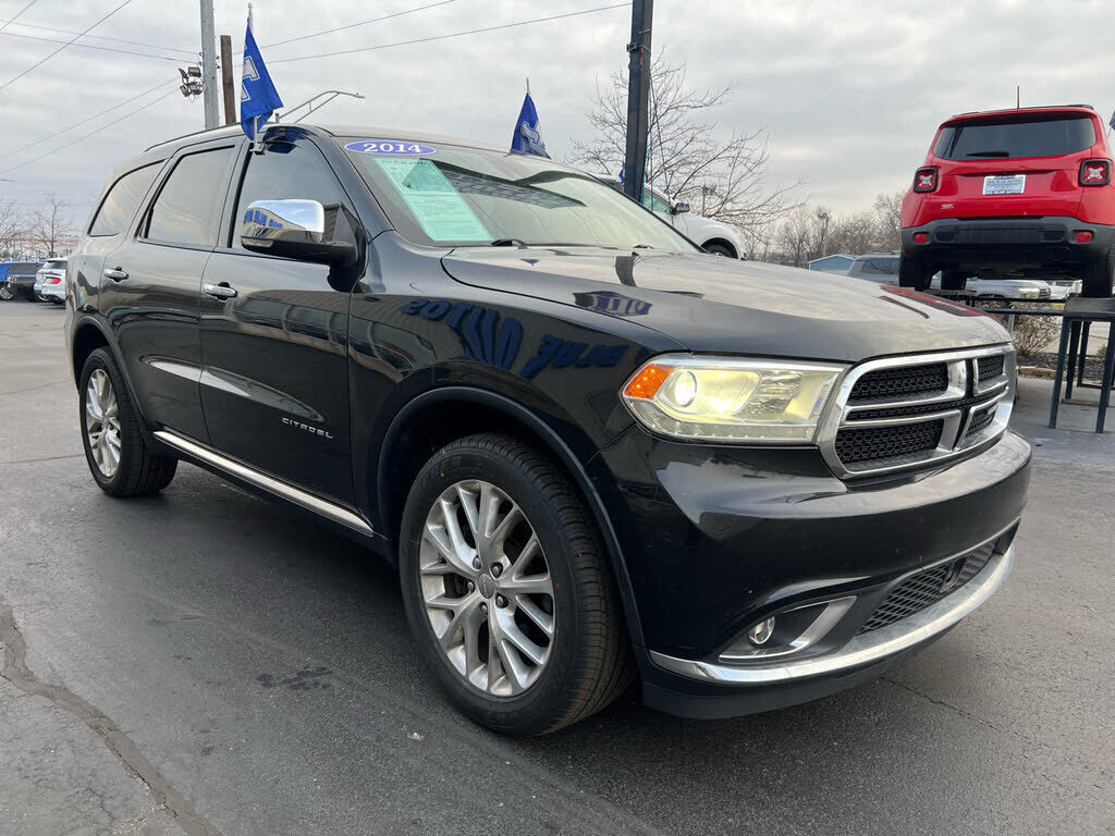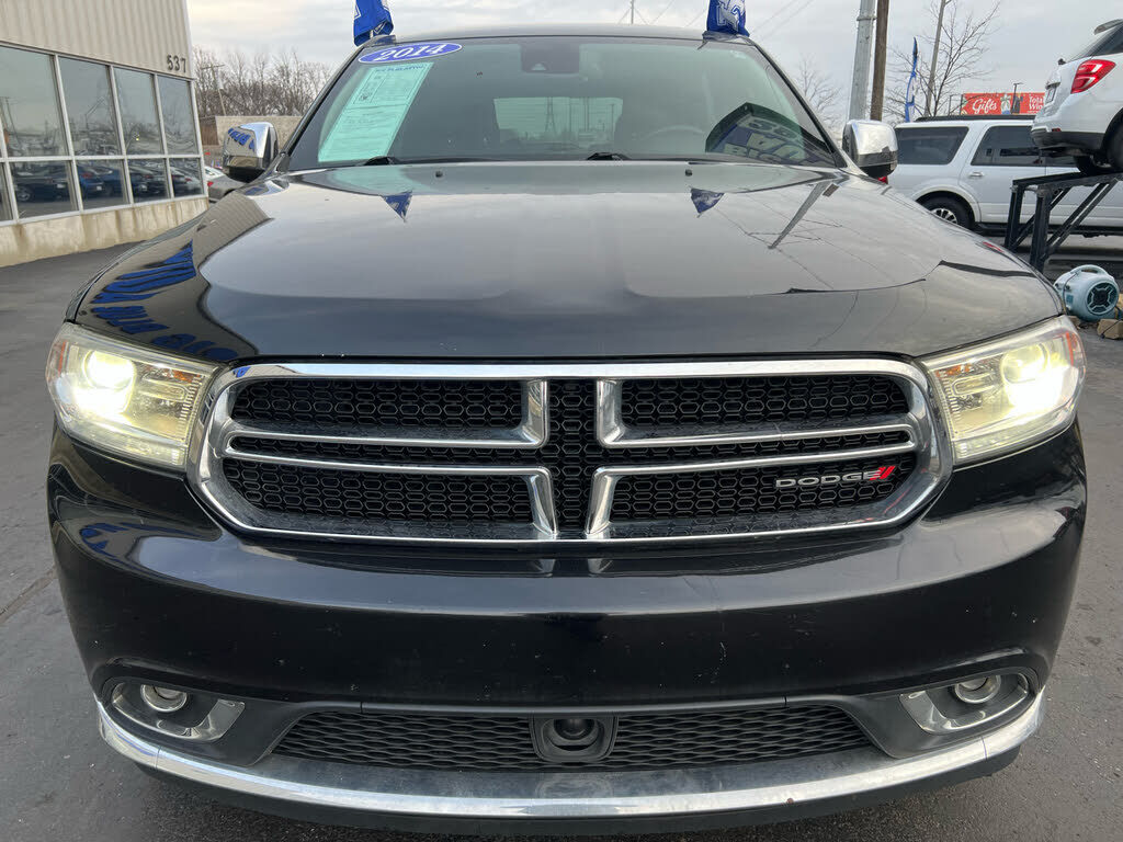 Get ready to hit the road in style with this sleek Black 2014 Dodge Durango. With its powerful 3.6L V6 engine under the hood this SUV delivers a smooth and efficient ride every time. The fully polished aluminum 20" wheels and chrome accents give this...