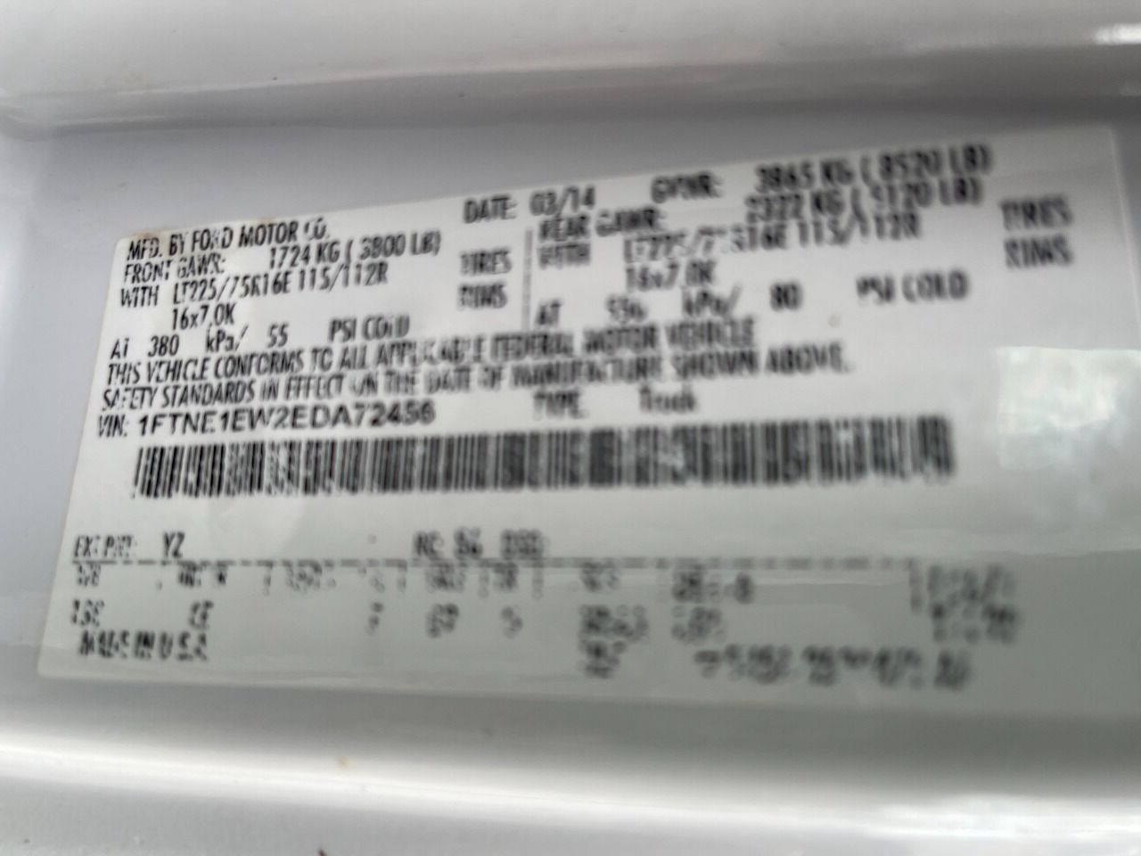 VIN 1FTNE1EW2EDA72456 may have been