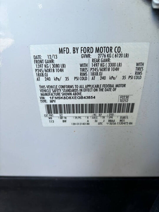 VIN 1FM5K8D8XEGB43854 may have been recalled. Check full report for more information