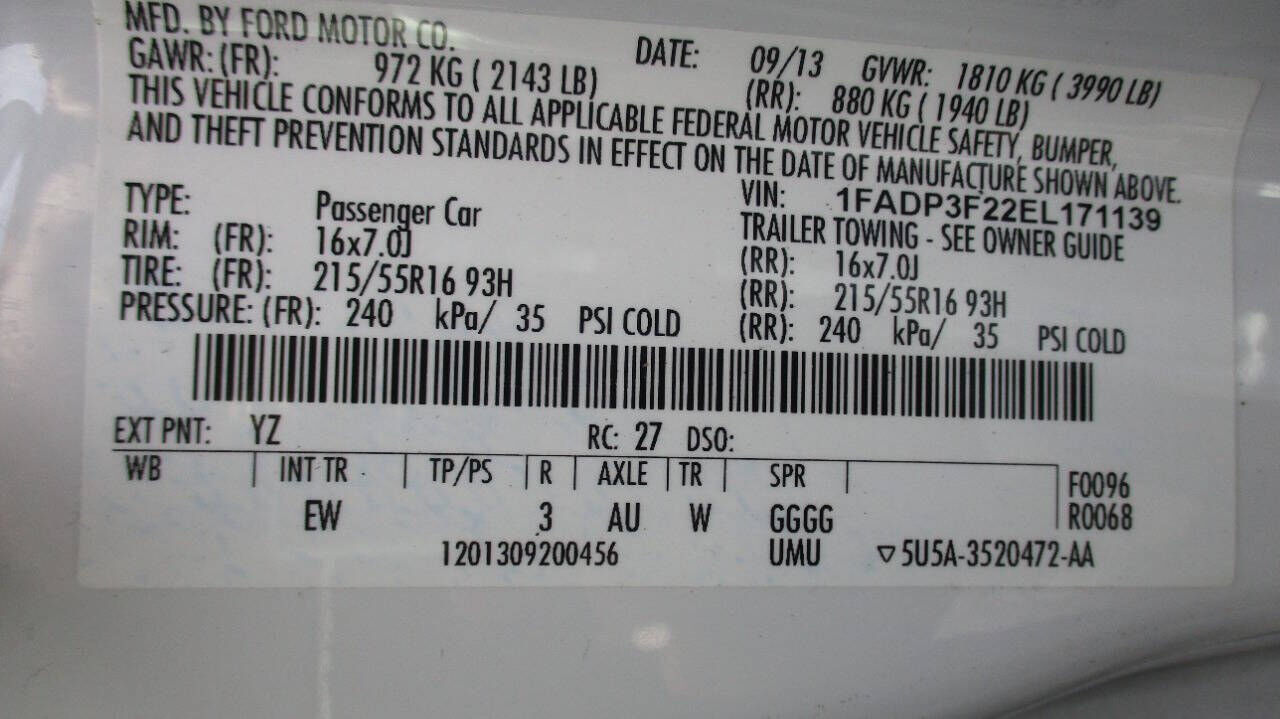 Vehicle Records & Info. Your report VIN 1FADP3F22EL171139 includes:
