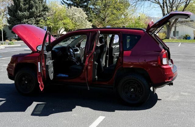 2014 Jeep Compass Sport 2.4L I4 DOHC 16V Dual VVT 5-Speed Manual 4WD 4D Sport Utility Deep Cherry Red Crystal Pearlcoat Fresh oil change, 4WD, 1-Year SiriusXM Radio Service, 17' x 6.5' Aluminum Wheels, 4 Speakers, 4-Wheel Disc Brakes, 4.12 Axle Ratio...
