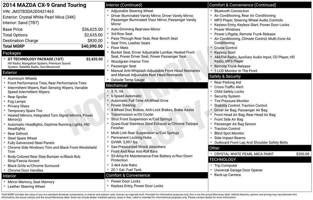 Mazda North American Operations (Mazda) is recalling certain model year 2007-2014 CX-9 vehicles manufactured October 24, 2006, to December 28, 2013. The affected vehicles have front suspension ball joints that may corrode from water leaking into the fitting.