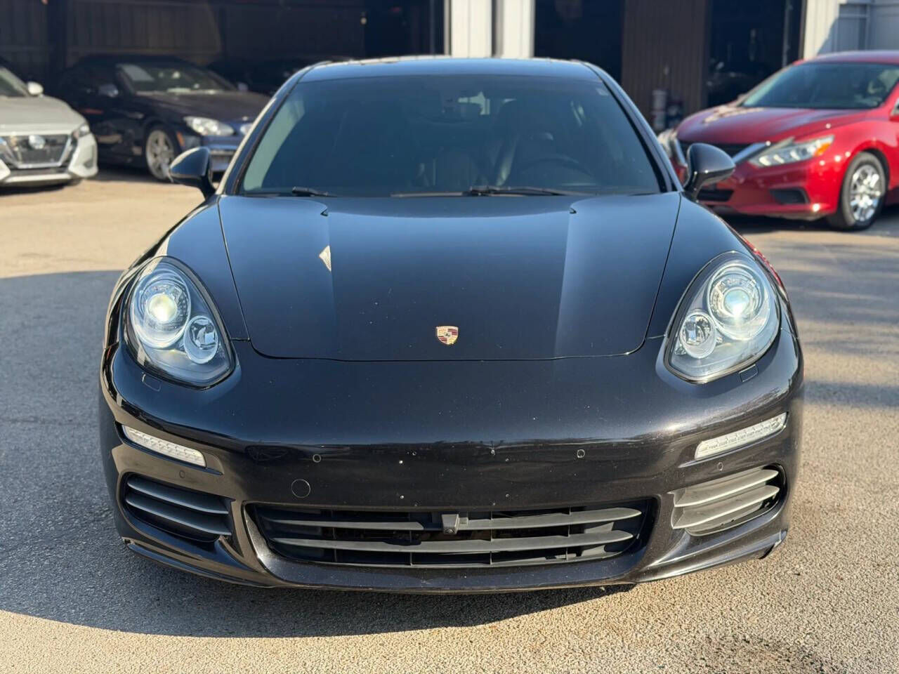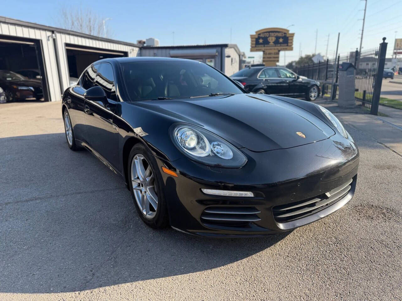 The 2014 Porsche Panamera 4 Sedan 4D combines executive luxury with sports car DNA, featuring a 3.6L V6 engine and a 7-speed PDK automatic transmission with AWD. Showing 91,491 miles, this sleek black-on-black sedan is equipped with a moonroof, navig...