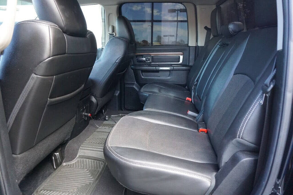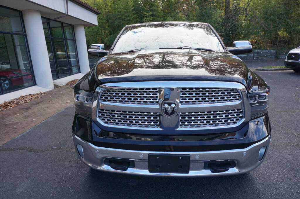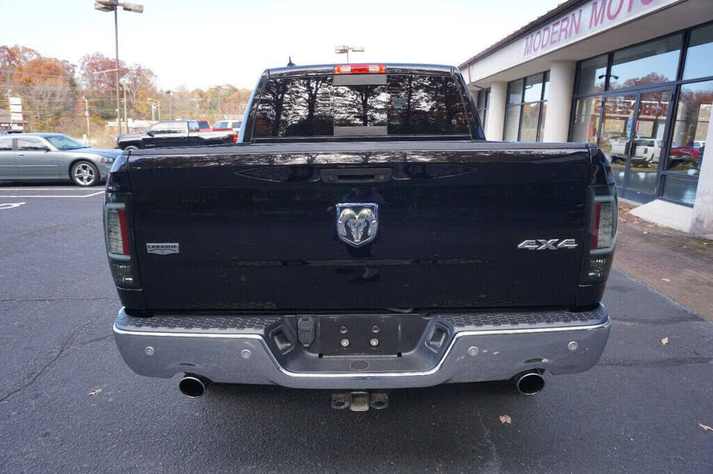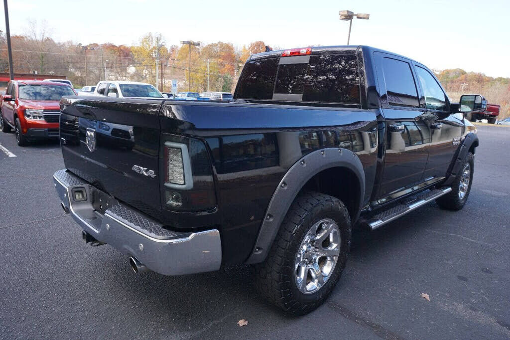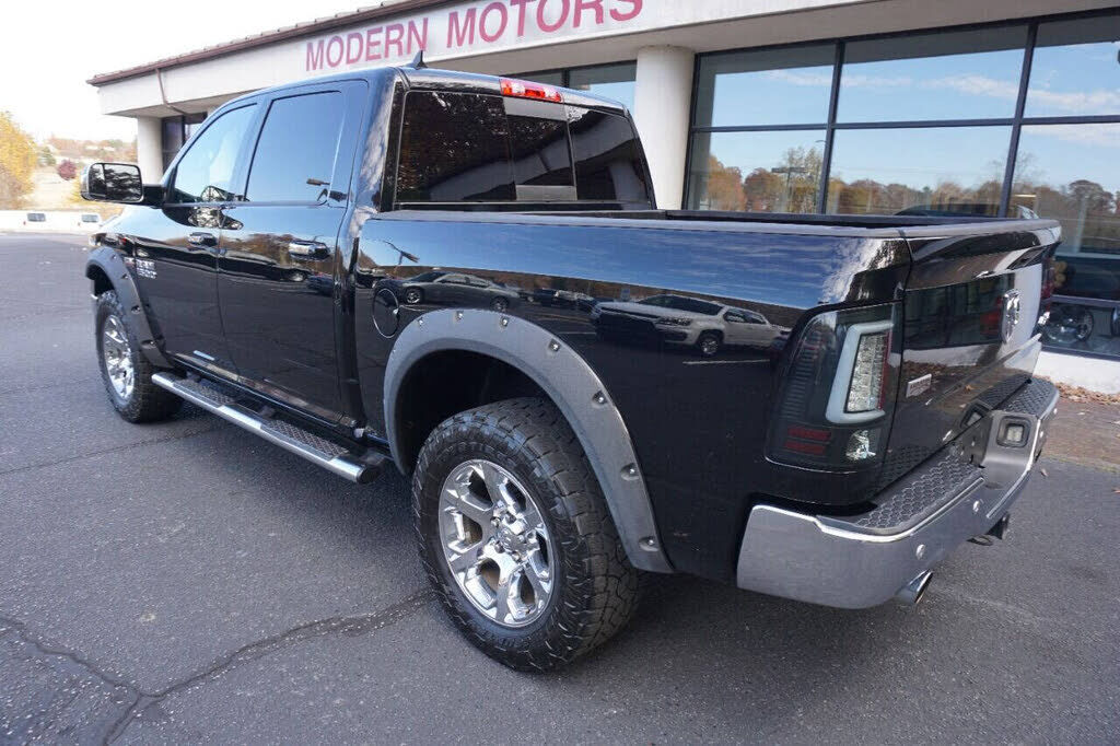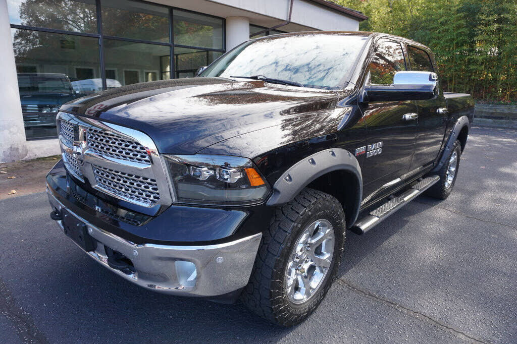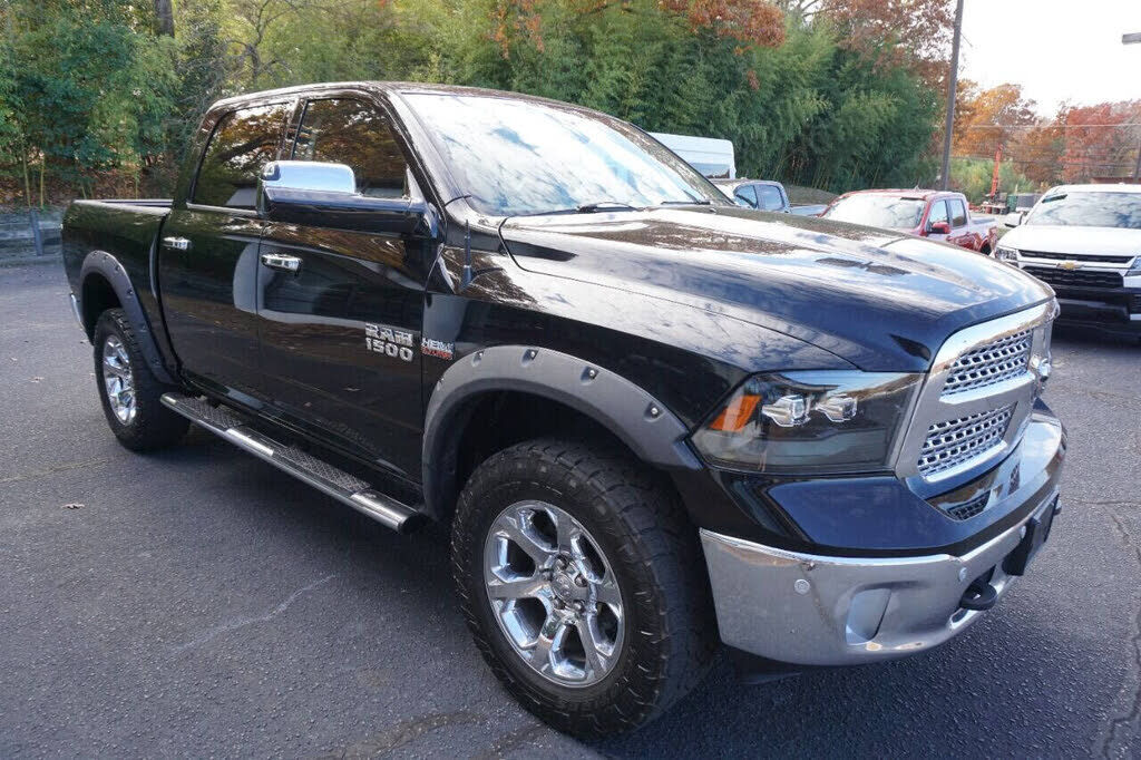 Super sharp Ram 1500 Laramie Crew Cab 4X4 that runs out great and looks good too! This full-size pickup is equipped with a 5.7 Hemi V8 engine and an automatic 8-speed transmission. This truck is loaded with specialty features including custom headlig...