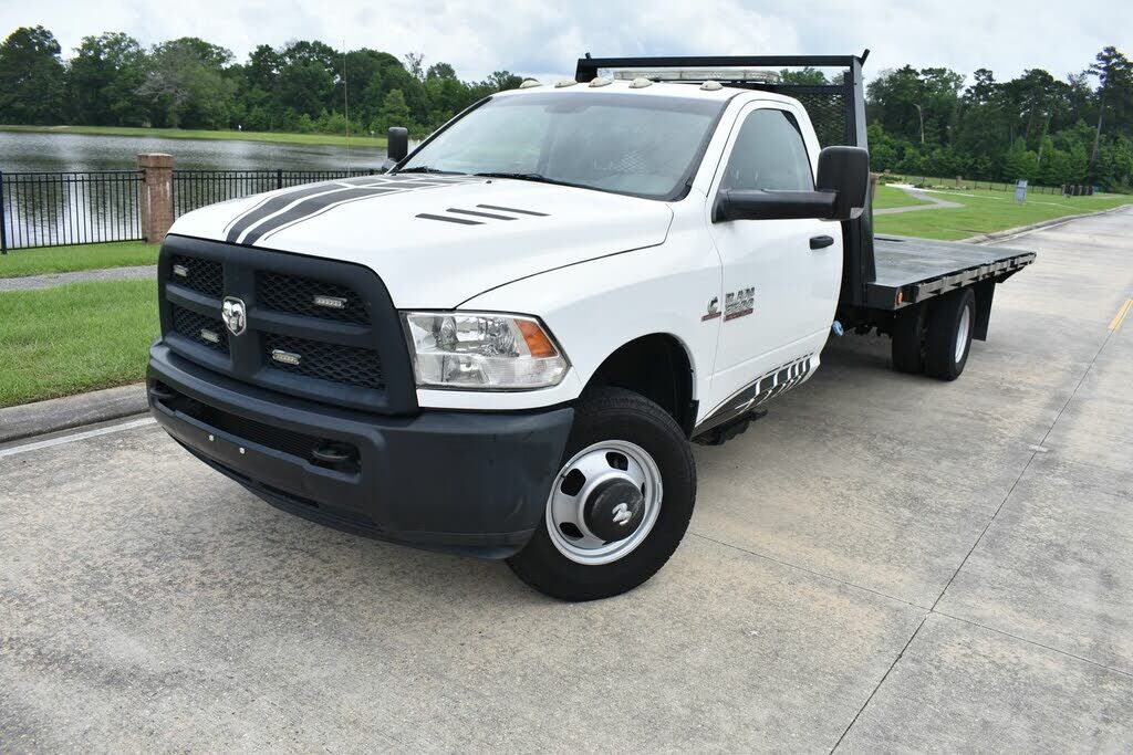 A HOTSHOTTERS DREAM RARE SIX SPEED MANUAL TRANSMISSION UPGRADED CLUTCH WITH SINGLE MASS FLYWHEEL ( PRODUCES GEAR ROLLOVER NOISE DUE TO UPGRADED CLUTCH) LOW LOW MILES 13000 GVWR 17FT FLAT BED WITH ROLLERS You are looking at a 2014 Dodge Ram 3500 Regul...