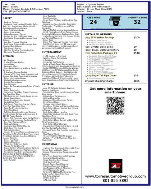 The 2014 Subaru Forester 4dr Auto 2.5i Premium PZEV is a versatile and capable SUV, boasting an elegant Crystal Black Silica exterior that perfectly complements its sleek design. Inside, the Forester features a sophisticated Black interior, offering...