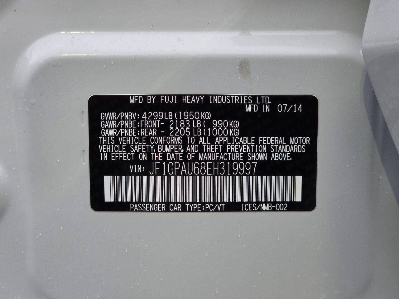 VIN JF1GPAU68EH319997 may have been