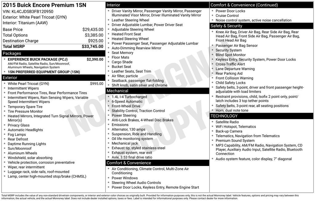 I'm interested in: 2015 BUICK Encore