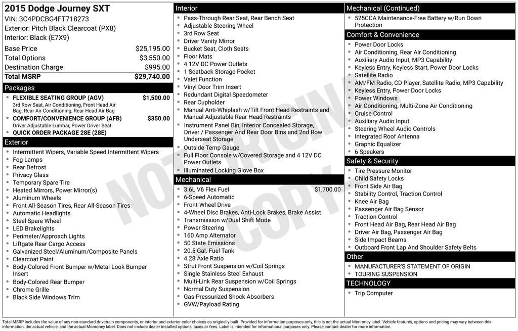 Chrysler Group LLC (Chrysler) is recalling certain model year 2014-2015 Dodge Journey vehicles manufactured October 25, 2013, to August 22, 2014. The affected vehicles may be equipped with tire placard labels which contain inaccurate seating capacity and occupant/cargo combined weight information. As such, these vehicles fail to comply with the requirements of Federal Motor Vehicle Safety Standard (FMVSS) No. 110, "Tire Selection and Rims for Passenger Cars."