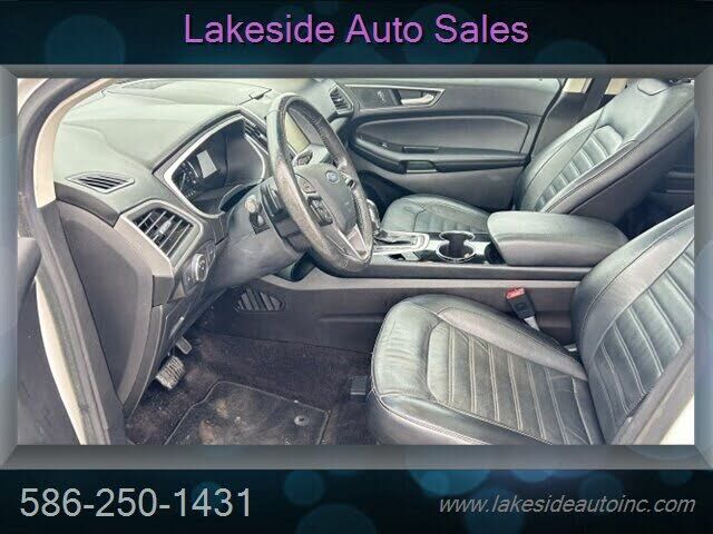 2015 Ford Edge SEL This 2015 Ford Edge SEL is finished in white exterior paint with a black leather interior and is powered by Fords EcoBoost 2.0L Turbocharged inline-4 engine, rated at 245 horsepower and 275 lb-ft of torque. Fuel economy for this...
