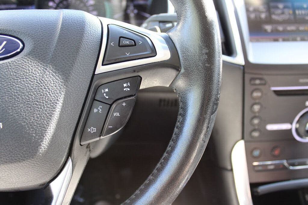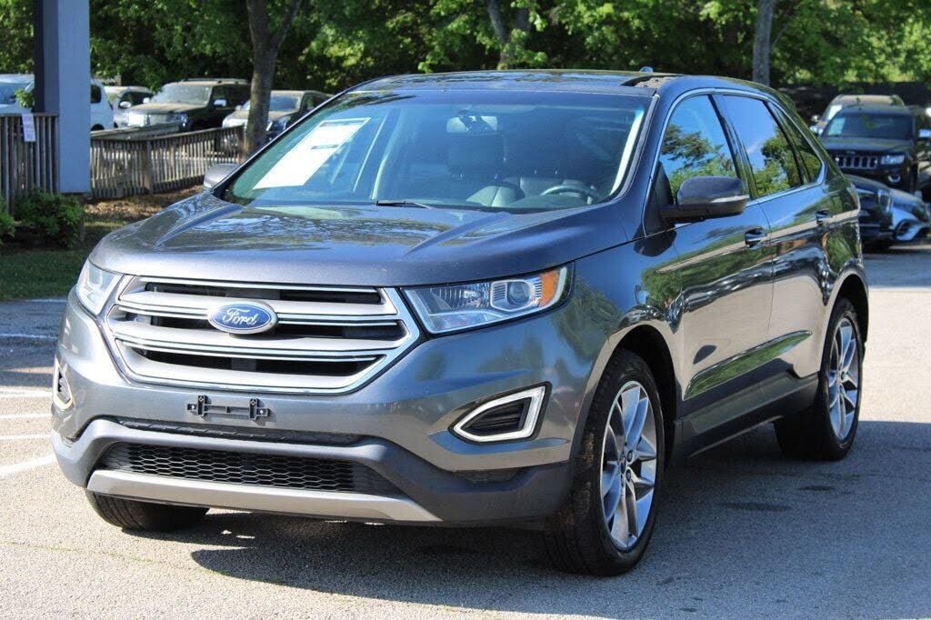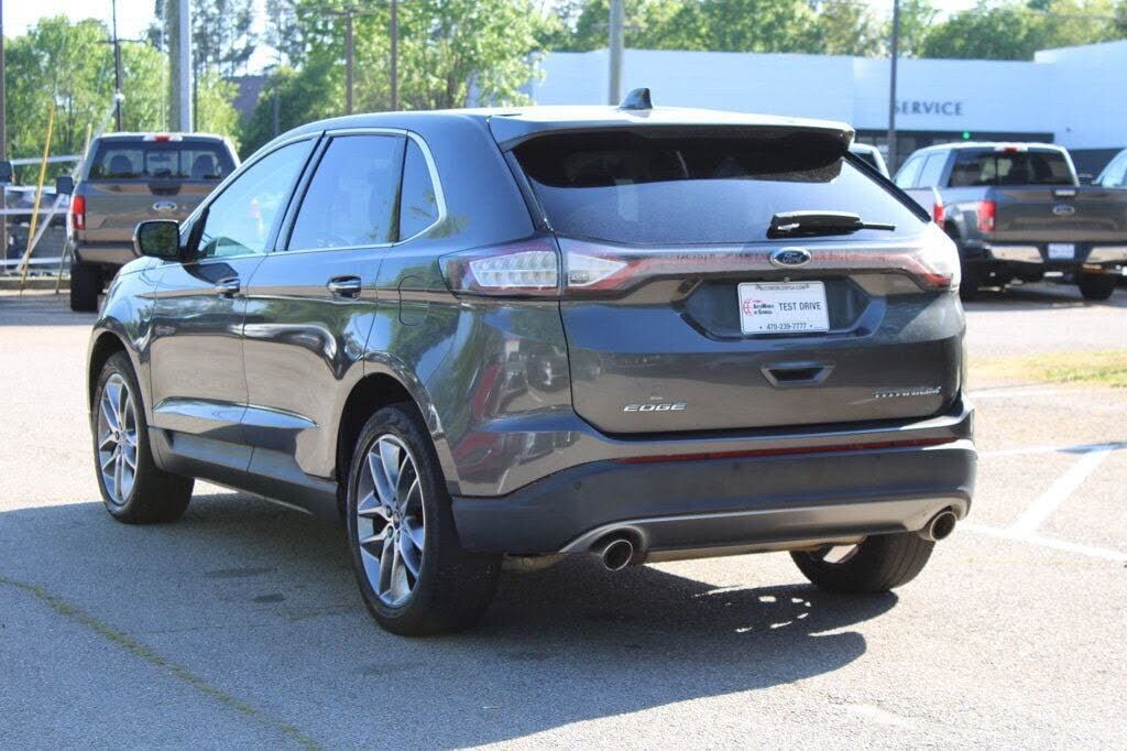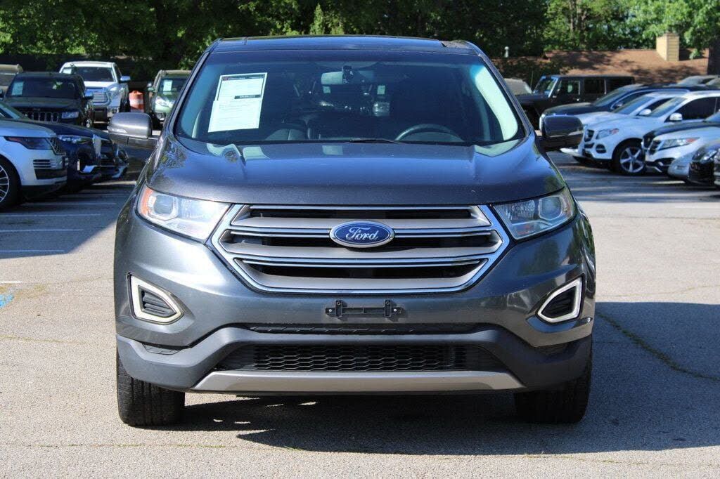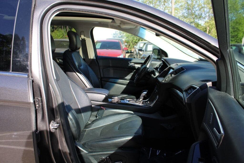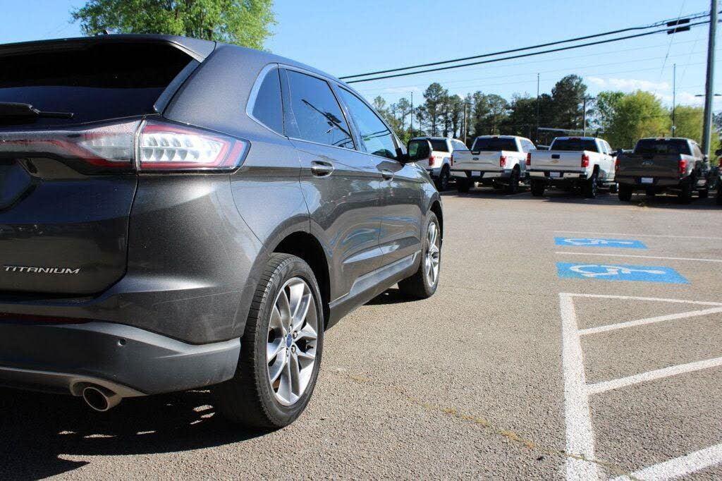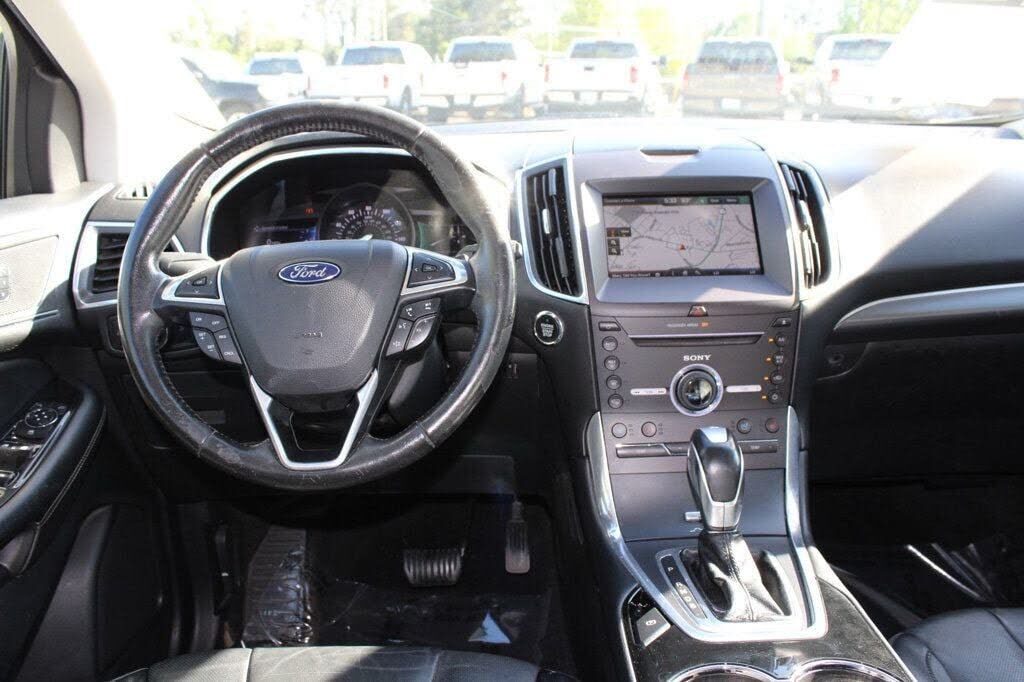 This 2015 Ford Edge 4dr 4dr Titanium FWD features a 3.5L V6 CYLINDER 6cyl Gasoline engine. It is equipped with a 6 Speed Automatic transmission. The vehicle is Magnetic Metallic with a Ebony Leather interior. It is offered As-Is, extended warranty is...