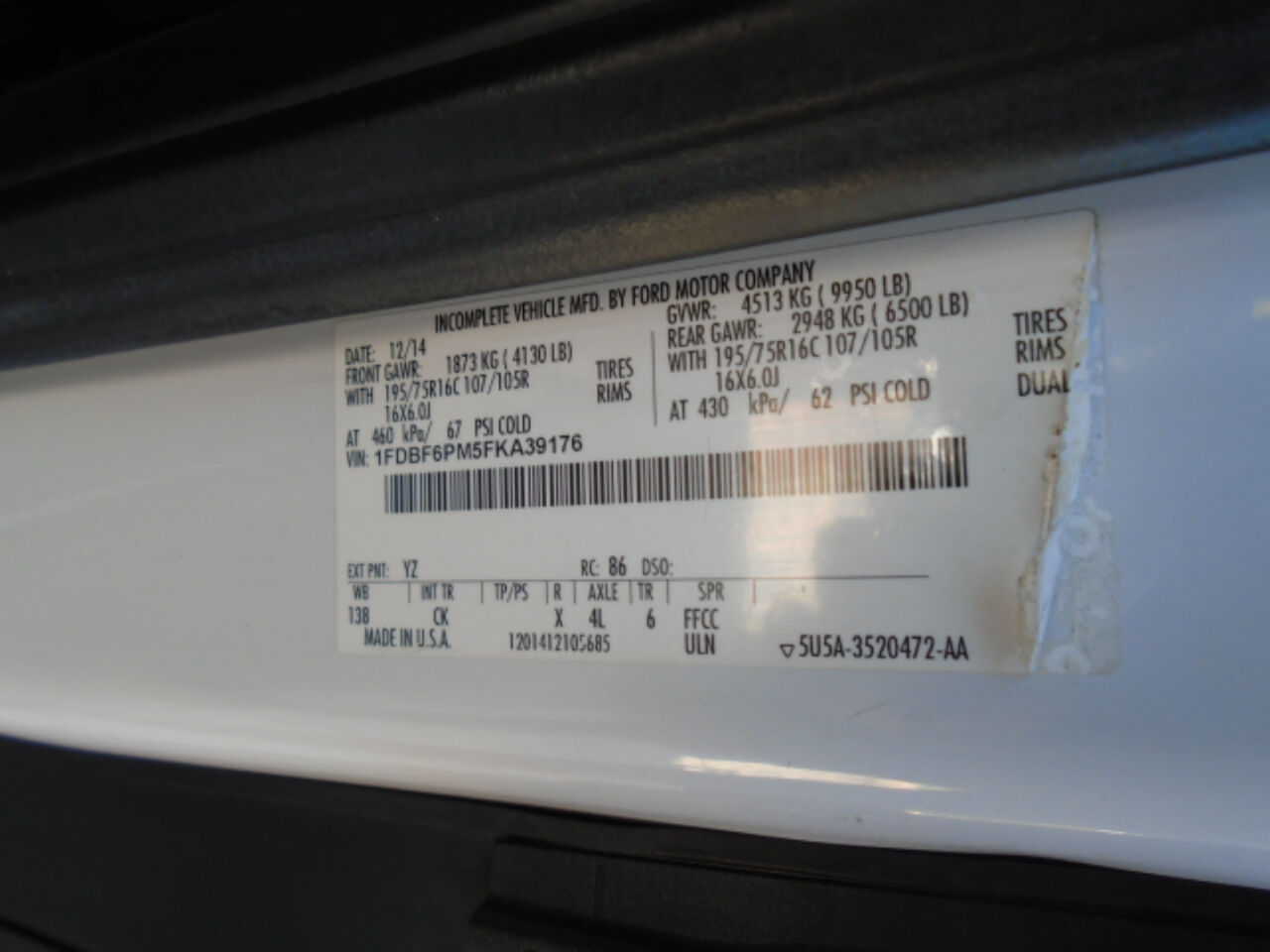 VIN 1FDBF6PM5FKA39176 may have been