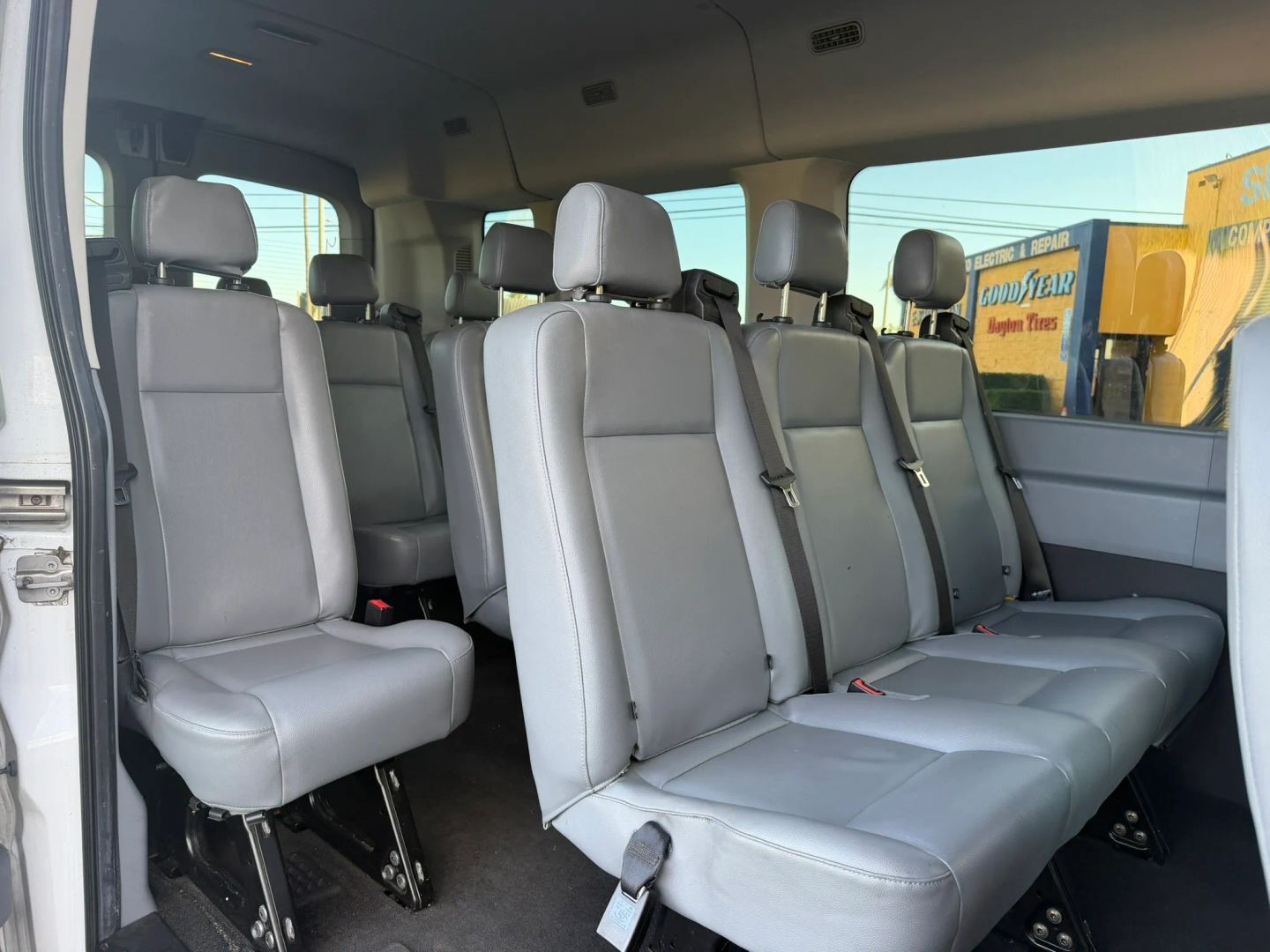 The 2015 Ford Transit Wagon T-350 148" Med Roof XL is a versatile and spacious vehicle designed to accommodate both passengers and cargo with ease. Dressed in a sleek Oxford White exterior, this wagon carries an understated yet professional appearanc...