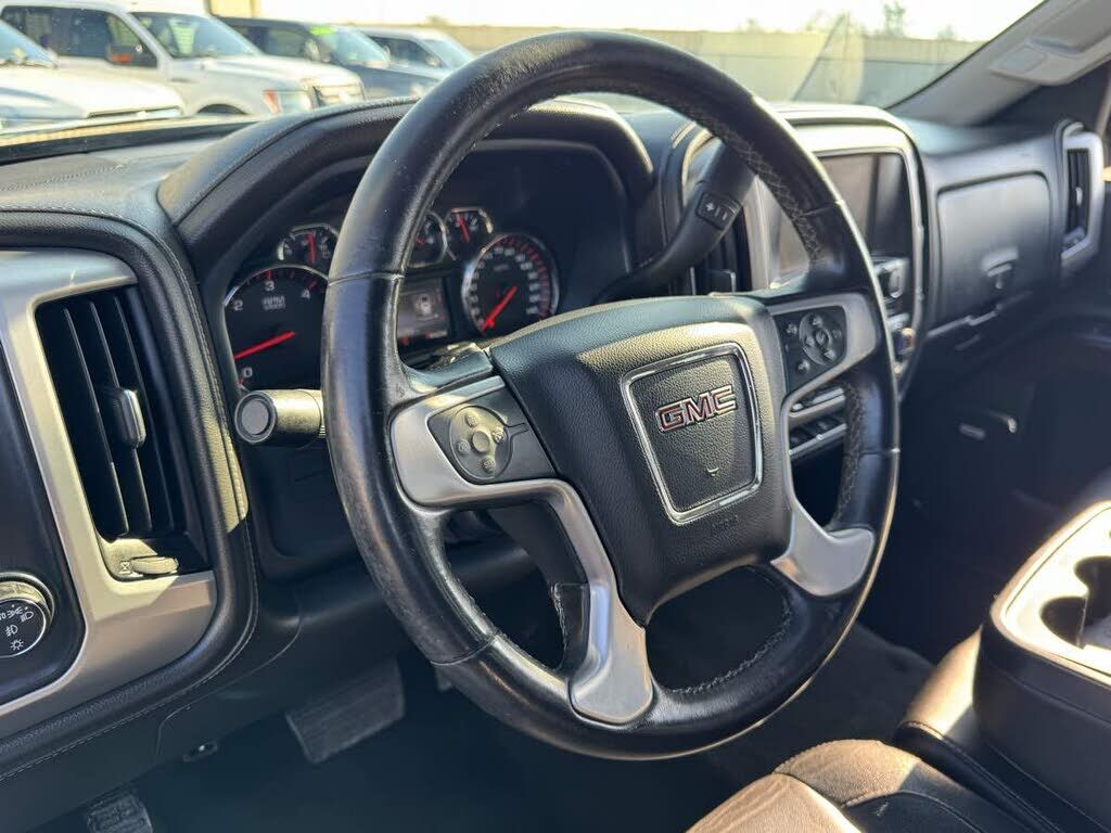 Style meets substance in our 2015 GMC Sierra 1500 SLT Z71 Off-Road Crew Cab 4X4 presented in beautiful Onyx Black. Powered by a 5.3 Liter V8 that offers 355hp paired with a 6 Speed Automatic transmission with Tow/Haul mode to provide great hauling an...