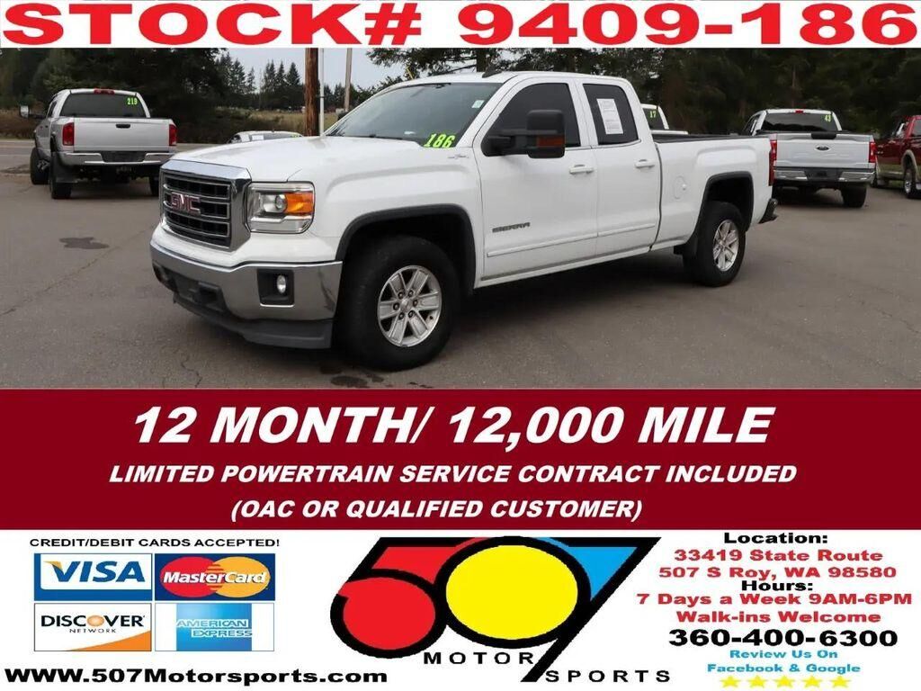 507 MotorsportsLocation: 33419 WA-507 in Roy, WA 98580Contact us: Website: 507motorsports.comVehicle Info:Year: 2015Make: GMCModel: Sierra 1500Trim: SLEFuel: GasolineMileage: 186,650Trans: AutomaticVin: 1GTV2UEC8FZ373012Stock #: 9409-186Engine: 5.3L...