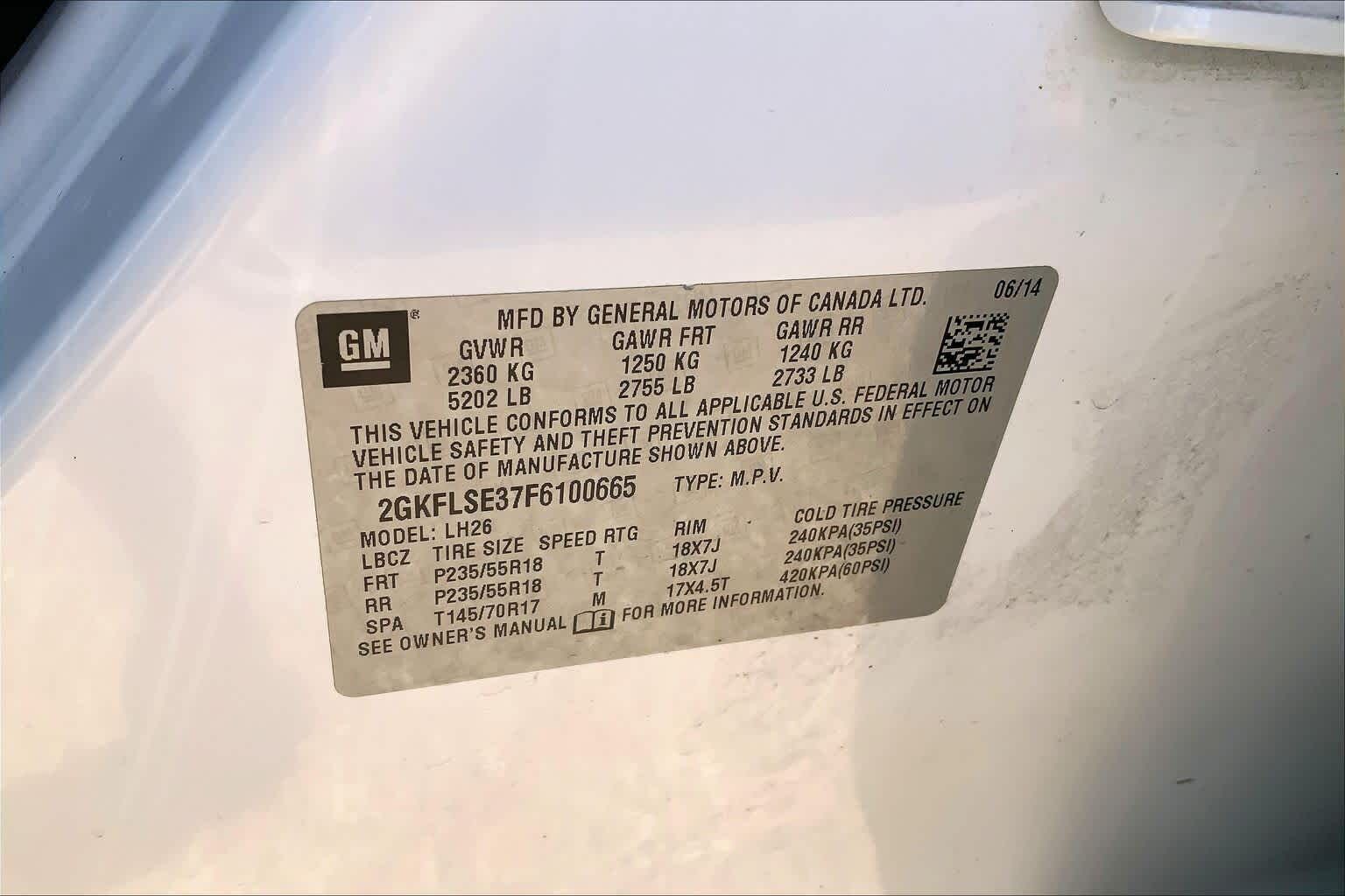 VIN 2GKFLSE37F6100665 may have been