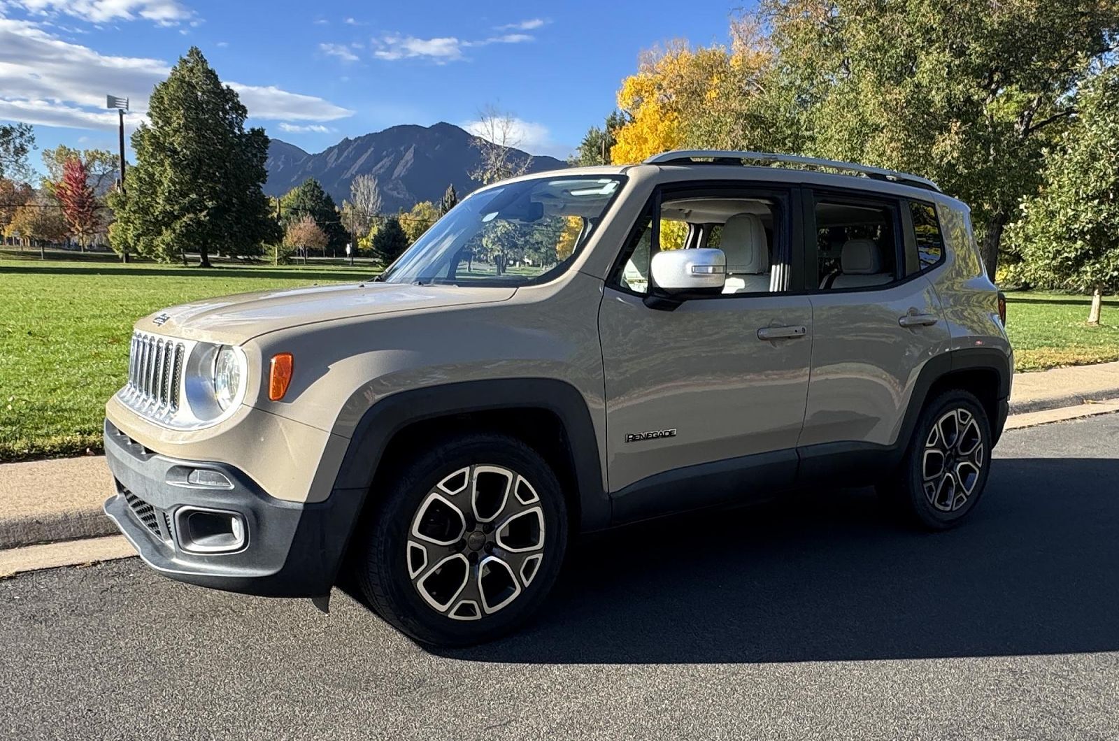 This Beautiful One Owner Jeep Renegade is a recent addition to the Boulder Motors inventory. It is finished in Jeep Mojave Sand (PTA) with Ski Gray/Bark Brown interior. The CarFax and Auto check is clean and Clear with no Accidents. The CO title is C...