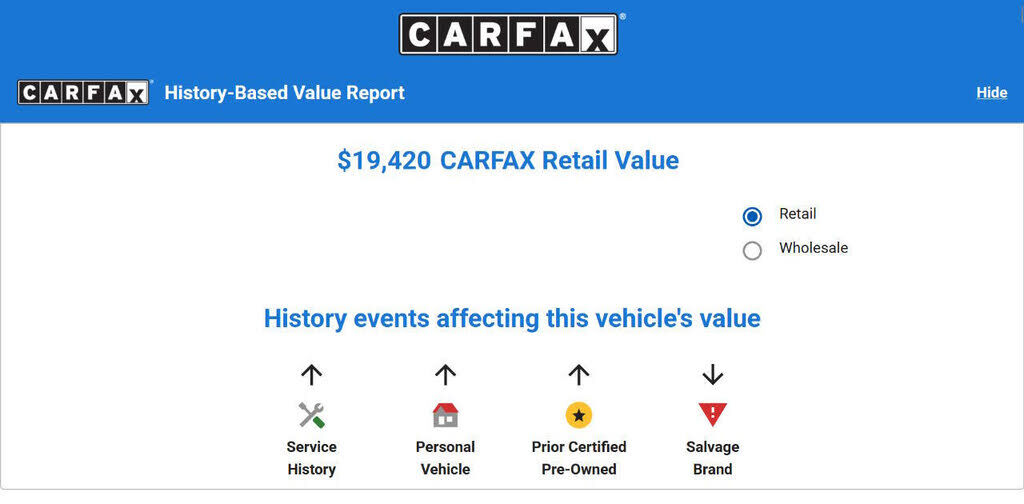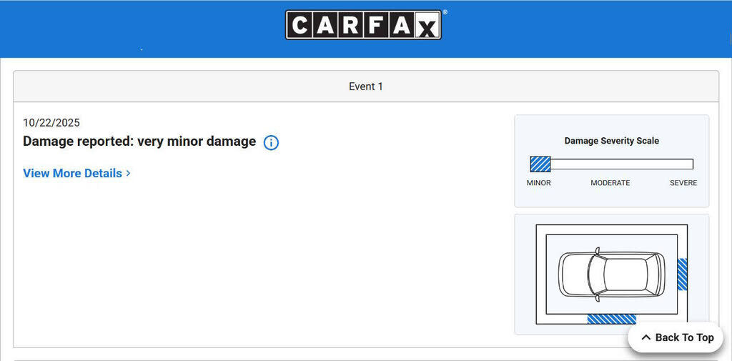 CARFAX https://autohelperbot.com/en/carfax/1f7ebedbd46d1d9a00ecbff341b17cb5Bumper Detail - Rear Protector, Rear Spoiler - Roofline, Rear Trunk/Liftgate - Liftgate, Rear Trunk/Liftgate - Power Operated, Door Handle Color - Body-Color, Front Bumper Col...