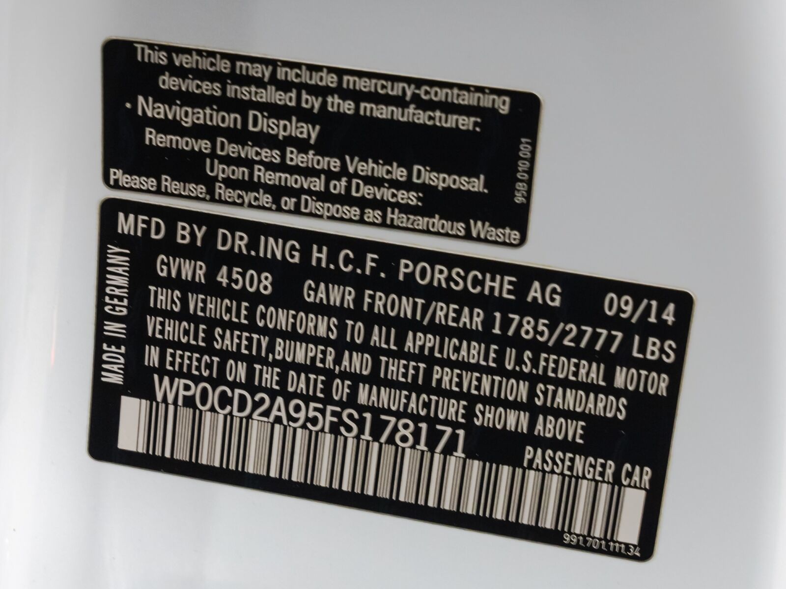 VIN WP0CD2A95FS178171 may have been