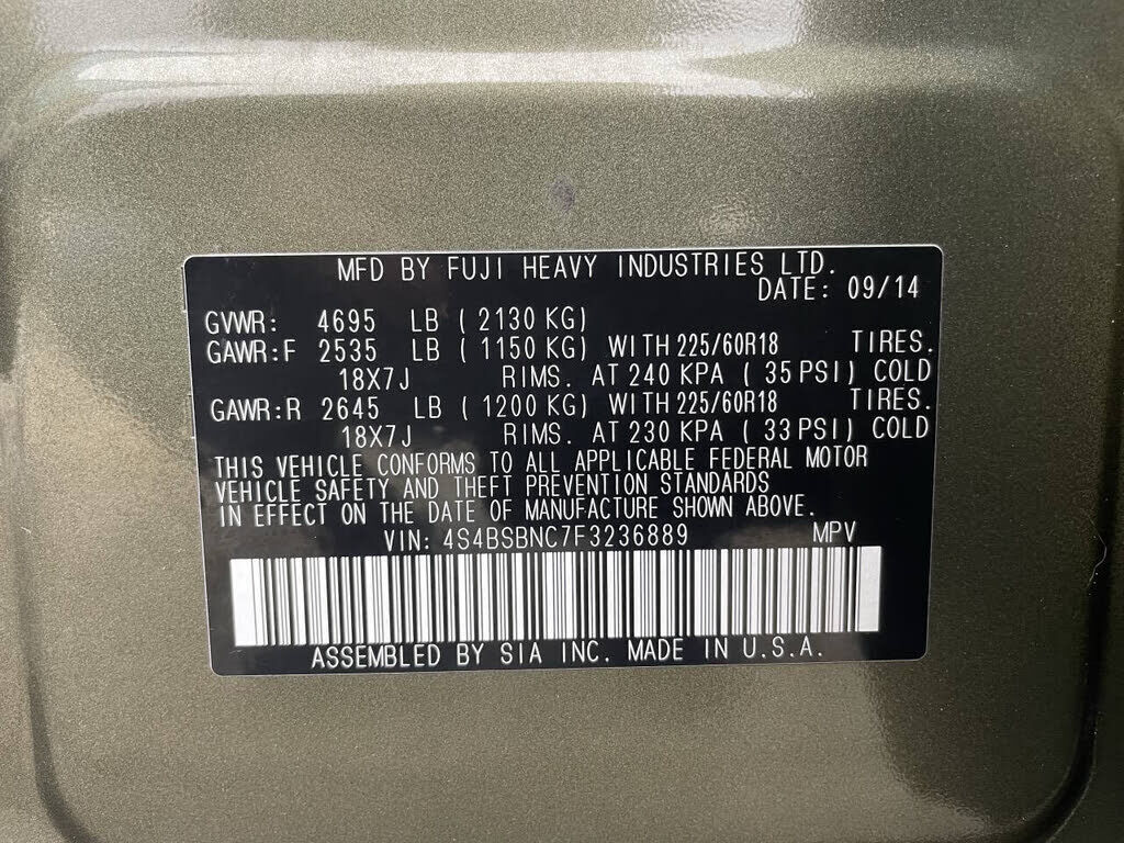 VIN 4S4BSBNC7F3236889 may have been recalled. Check full report for more information