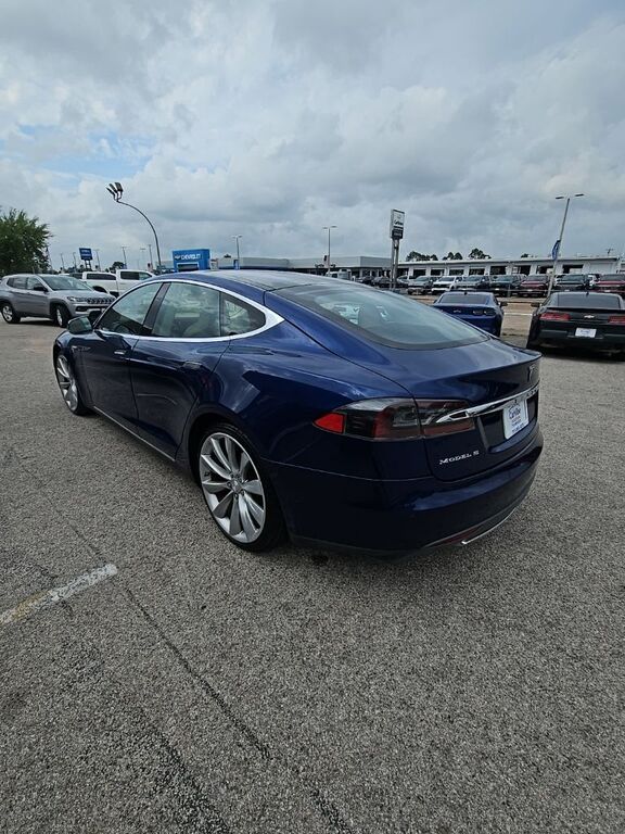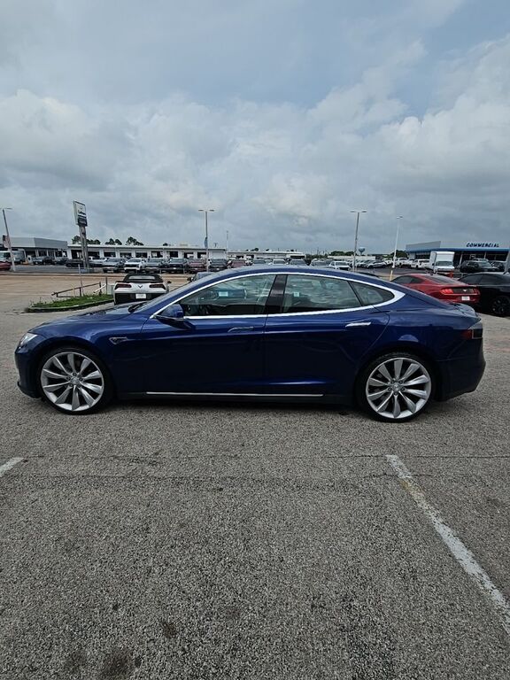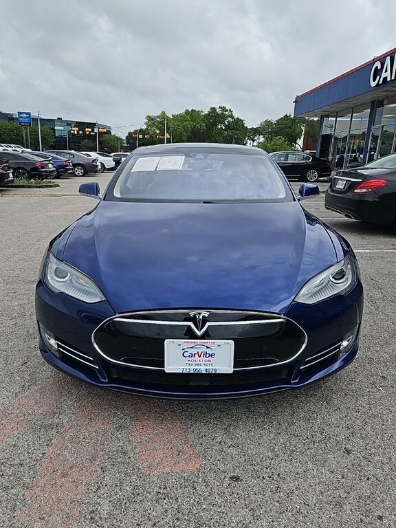 Discover the exhilarating performance and cutting-edge technology of this 2015 Tesla Model S P90D. This stunning electric vehicle boasts a deep blue metallic exterior, complemented by a luxurious tan leather interior, creating a striking and sophisti...