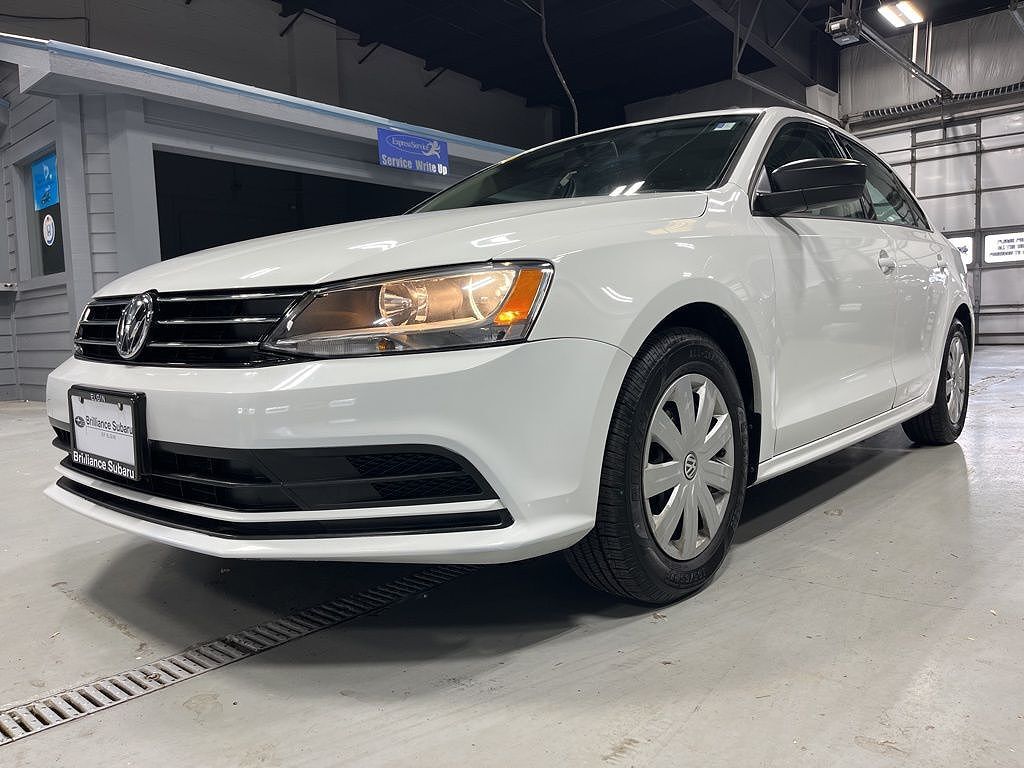 Pure White 2015 Volkswagen Jetta 2.0L S Black Cloth, 15" Steel Wheels w/Full Covers, 4 Speakers, 4-Wheel Disc Brakes, ABS brakes, Air Conditioning, AM/FM radio, Brake assist, Bumpers: body-color, CD player, Cloth Seat Trim, Driver door bin, Driver v...