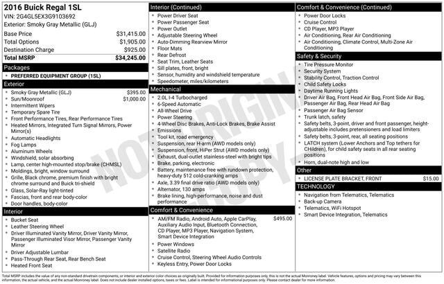 Recent Arrival! *** WE DELIVER *** Smoky Gray Metallic 2016 Buick Regal Turbo 4D Sedan 2.0L 4-Cylinder DGI DOHC VVT Turbocharged 6-Speed Automatic AWD 2-Way Adjustable Head Restraints, 2-Way Power Driver Lumbar Seat Adjuster, 4-Way Manual/2-Way P...