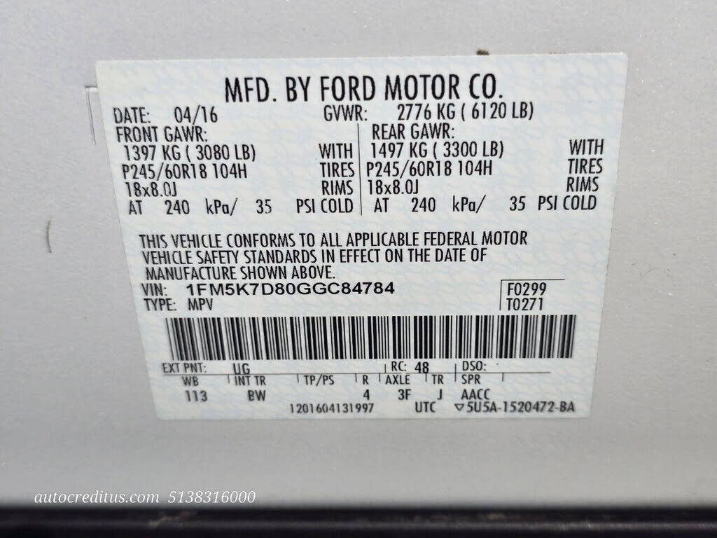 VIN 1FM5K7D80GGC84784 may have been