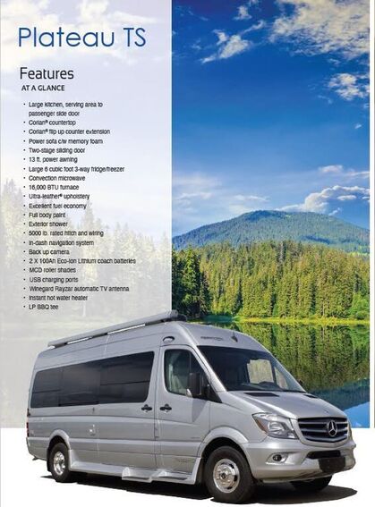 2016 Pleasure Way Plateau TS. Excellent Condition. Clean Carfax. Large kitchen, serving area to passenger side door. Corian countertop. Power sofa c/w memory foam Two-stage sliding door. 13 ft. power awning. Large 6 cubic foot 3-way fridge/freezer....