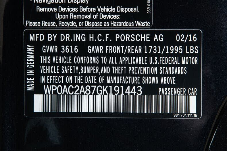 VIN WP0AC2A87GK191443 may have been