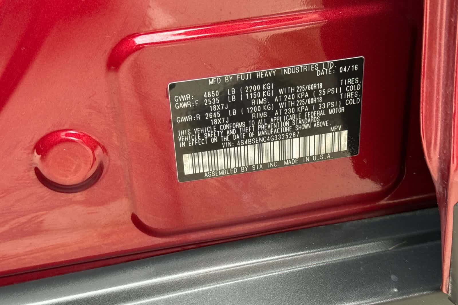 VIN 4S4BSENC4G3325287 may have been