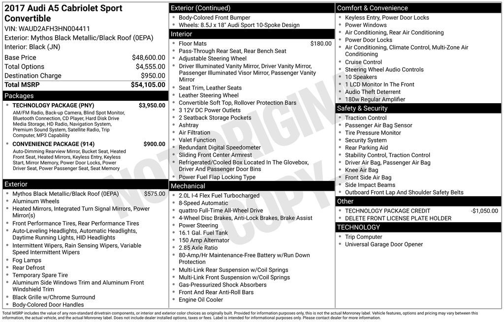 Black Metallic 2017 Audi A5 2.0T Sport quattro quattro 8-Speed Automatic with Tiptronic 2.0L 4-Cylinder TFSI 21/29 City/Highway MPG Reviews: * Classic styling that has stood the test of time; the interior is a fine example of elegant simplicity;...