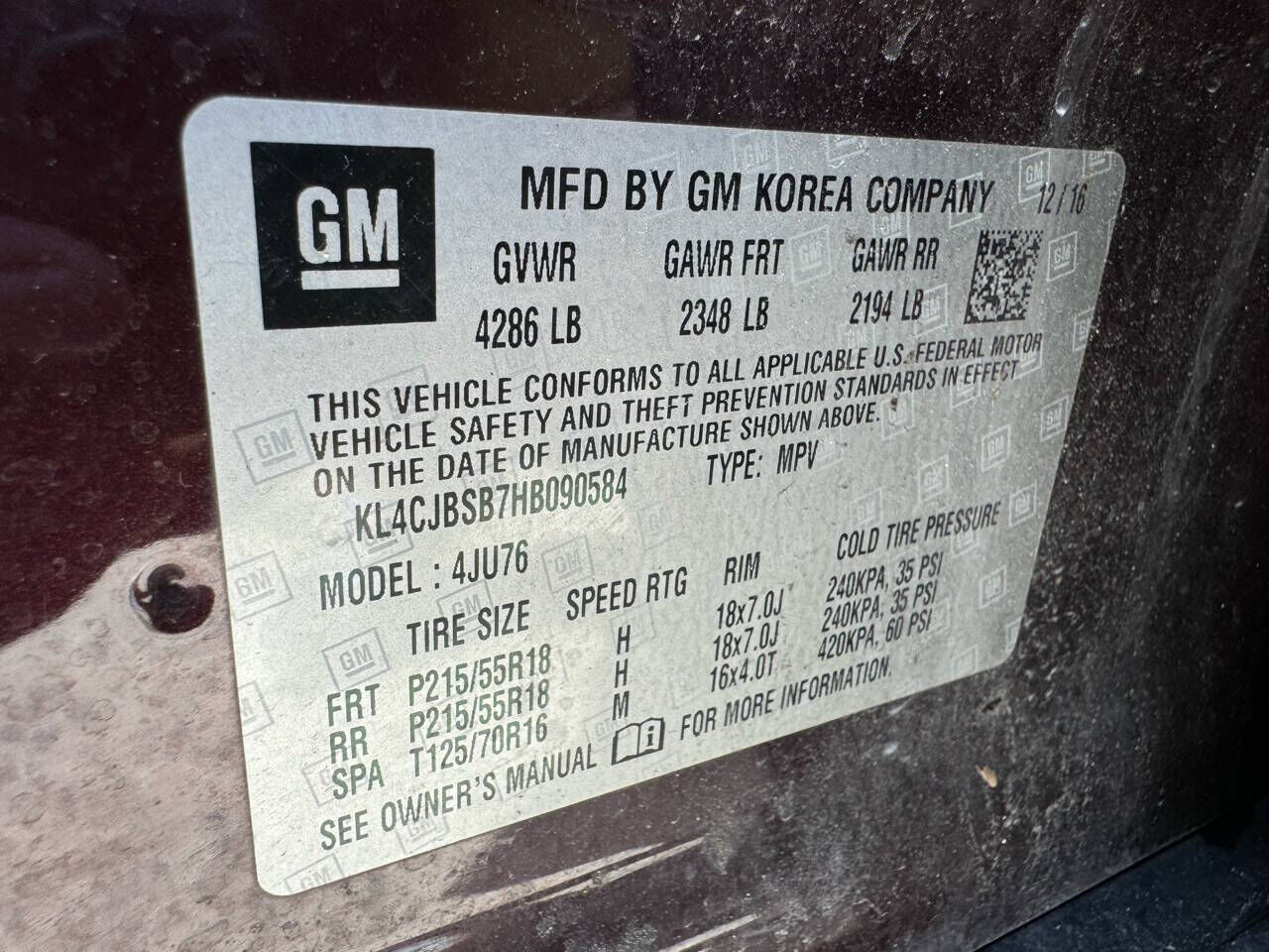 VIN KL4CJBSB7HB090584 may have been