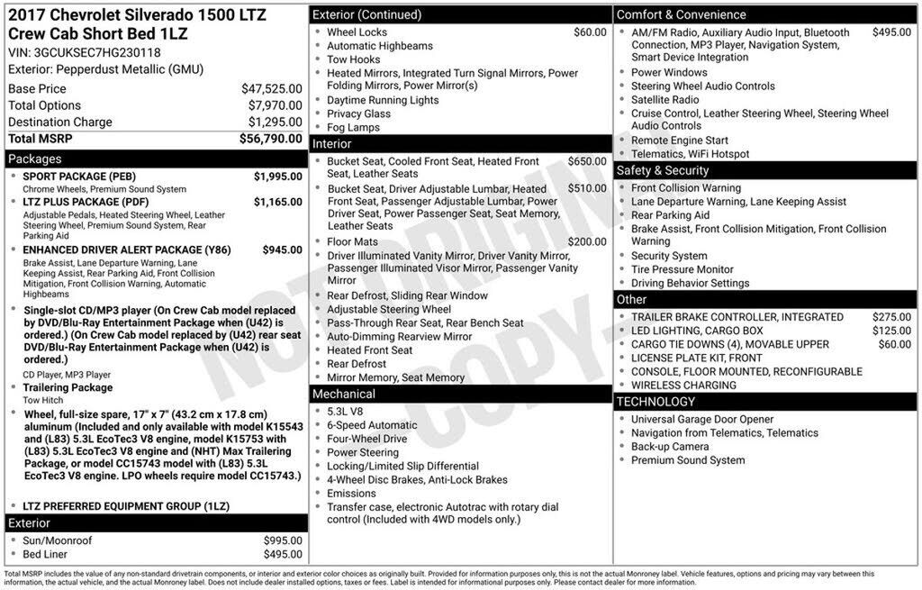 GVWR, 7200 lbs. (3266 kg) (Requires Crew Cab or Double Cab 4WD models and (L83) 5.3L EcoTec3 V8 engine or (L86) 6.2L EcoTec3 V8 engine.)