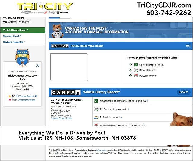 2017 Chrysler Pacifica Touring L Plus Granite Crystal Metallic Clearcoat Clean CARFAX. 18/28 City/Highway MPG Tri-City CJDR is here to serve the local community!! Awards: * JD Power Automotive Performance, Execution and Layout (APEAL) Study, Init...