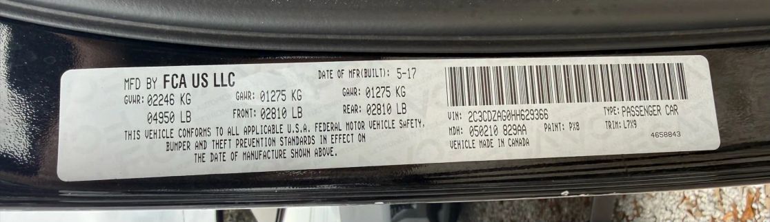 VIN 2C3CDZAG0HH629366 may have been
