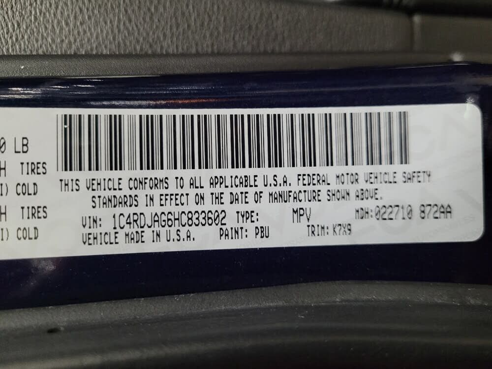 VIN 1C4RDJAG6HC833602 may have been