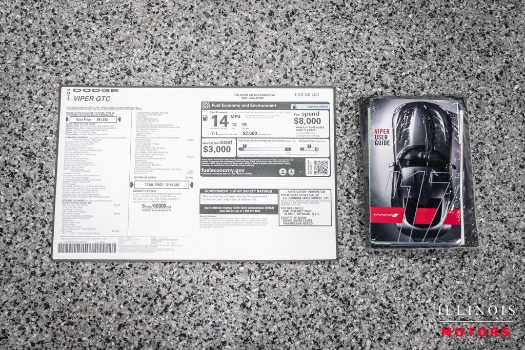 2017 Dodge Viper ACR GTS-R Commemorative EditionViper White Clear Coat over Black/Header RedExcellent Condition!**No. 8 of 100 Produced!!**Only 800 Miles! Factory Options:ACR Package (Originally $19,000)-19x11" / 19x13" ACR Gloss Black Wheels-Adjusta...