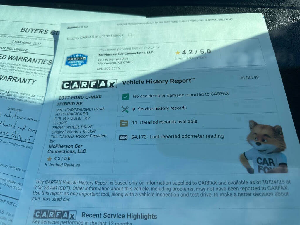 2017 FORD C-MAX SE HATCHBACK. ONE OWNER CAR. ONLY HAS 54000 LOW MILES ON IT. VERY NICE AND CLEAN INSIDE AND OUTSIDE. NON SMOKER AND NO ACCIDENTS. IT HAS A 2.0 FOUR CYLINDER HYBRID ENGINE AND IS FRONT WHEEL DRIVE. COMES WITH THE SE PACKAGE. SO IT HAS...