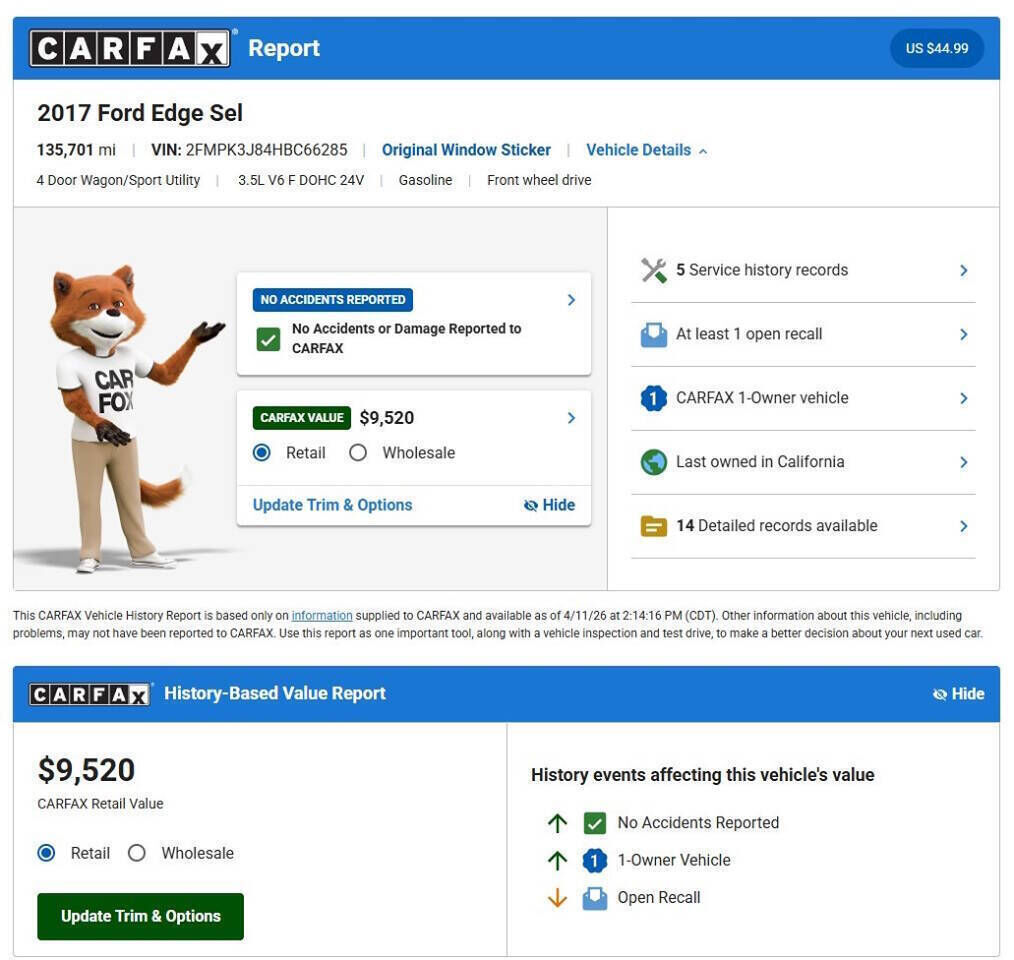 Vehicle Records & Info. Your report VIN 2FMPK3J84HBC66285 includes:
