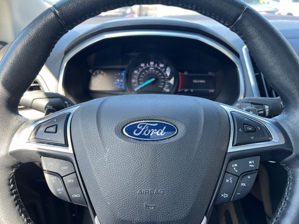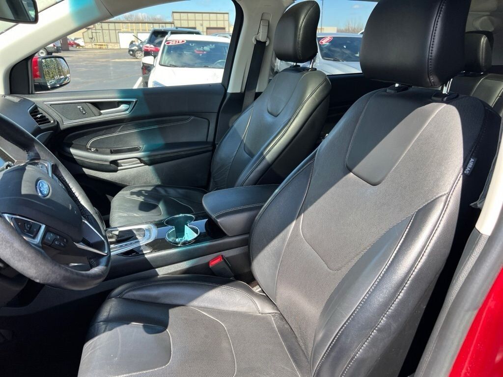 This 2017 Ford Edge Titanium delivers a refined blend of comfort technology and capability making it a standout choice in the midsize SUV segment. Finished with a sleek exterior and paired with a well-appointed interior the Edge Titanium offers a premium driving experience designed for both daily commutes and longer road trips. Under the hood it features a responsive engine paired with a smooth automatic transmission providing confident performance and efficiency. The ride is composed and quiet while its intelligent drivetrain enhances traction and control in a variety of driving conditions. Inside the cabin is thoughtfully designed with upscale materials and advanced features throughout. Leather-trimmed seating heated and cooled front seats and heated rear seats create year-round comfort for both driver and passengers. A panoramic Vista Roof brings in natural light adding to the open and airy feel of the interior while dual-zone automatic climate control helps keep everyone comfortable. Technology is front and center with an intuitive touchscreen infotainment system that includes voice-activated navigation Bluetooth® connectivity and smartphone integration. A premium Sony audio system delivers rich immersive sound while convenient features like push-button start remote start and a hands-free power liftgate make everyday use effortless. Safety and driver-assist features add peace of mind including a rearview camera reverse sensing system blind spot monitoring lane-keeping assistance and adaptive cruise control. Advanced airbag systems and stability control further enhance confidence behind the wheel. With its combination of upscale amenities smart technology and versatile performance this 2017 Ford Edge Titanium is a well-rounded SUV that’s ready to elevate your driving experience.
